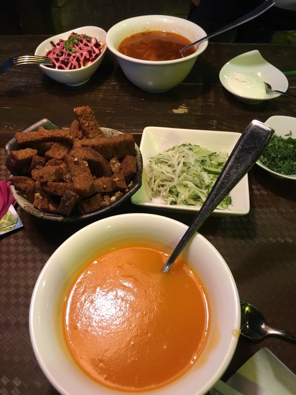 В нашем меню представлены блюда нескольких видов кухонь: кавказской (а именно грузинской), европейской (французской), паназиатской (тайской), из которых самой популярной, пожалуй, является европейская. Наши повара знают, как правильно сохранить истинный вкус главных составляющих в блюде - овощных или мясных, лишь аккуратно дополняя его вкусом специй. Вместе с тем у нас готовят авторские блюда. Особые рецептуры нашего шеф-повара смогут удивить и приятно порадовать даже самого избалованного посетителя. Наши повара разрабатывают новые кулинарные решения!